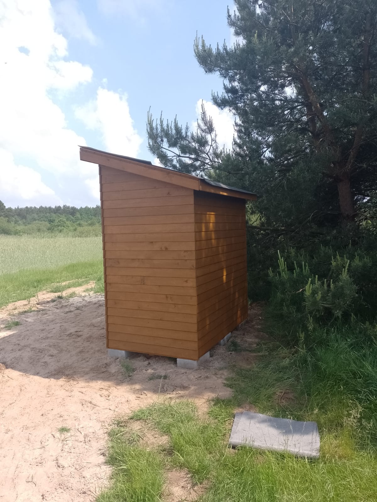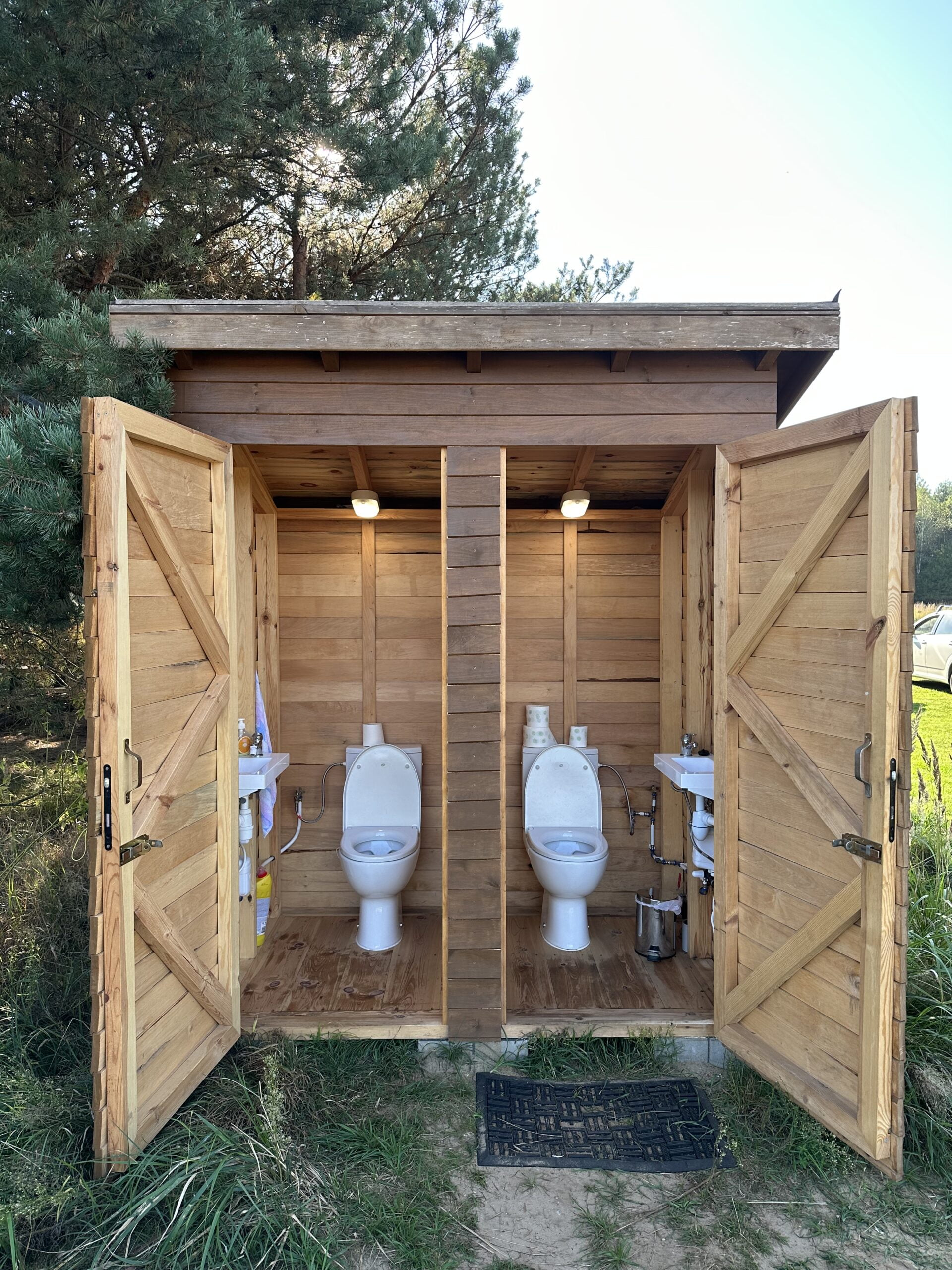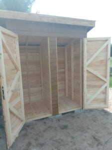 Drewniane toalety pod armaturę łazienkową do przystani kajakiemOK.