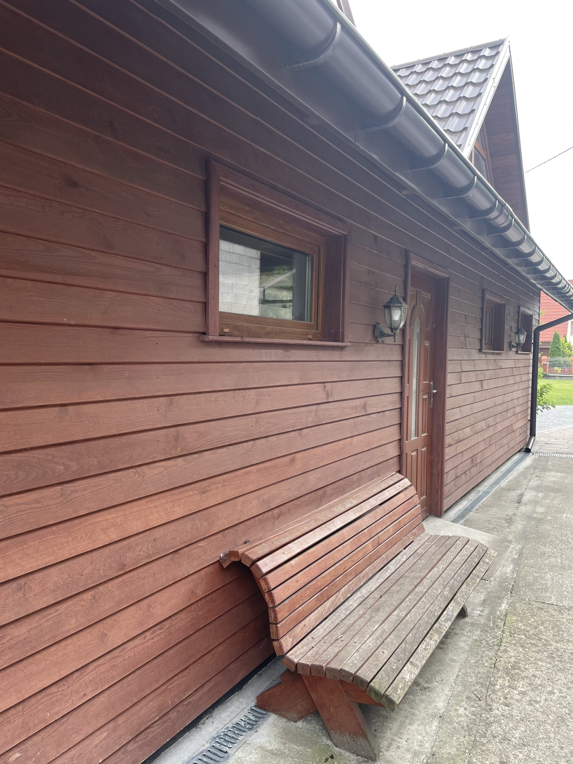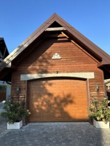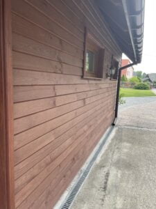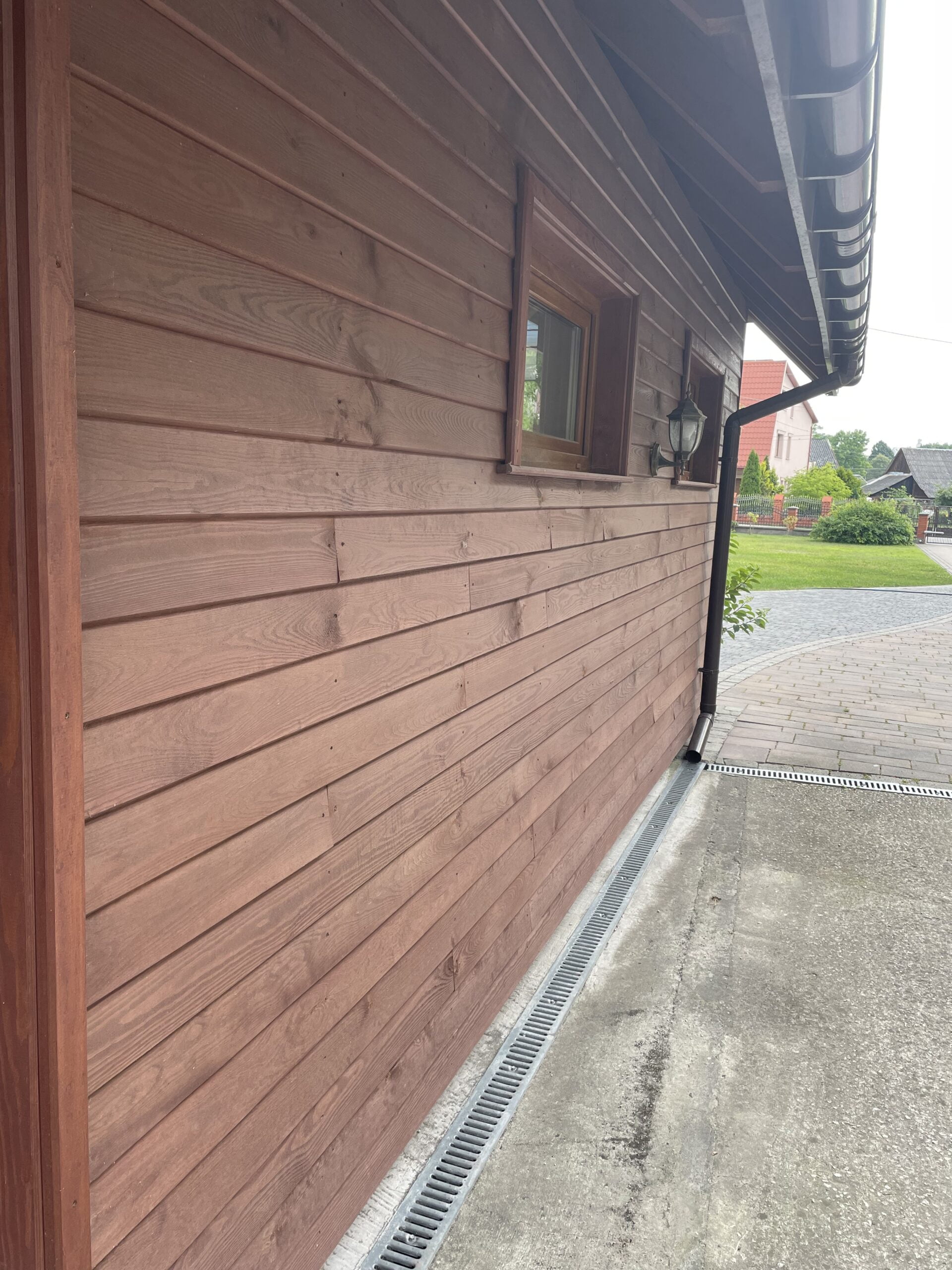Drewniana elewacja garażu wraz z ociepleniem wełną szklaną.
